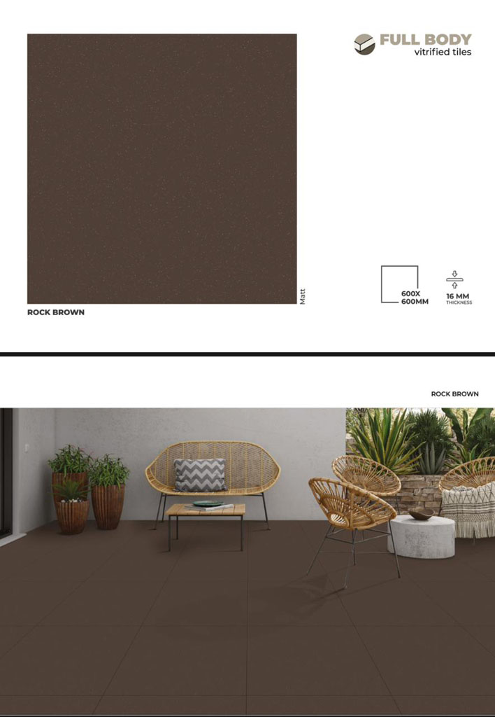 Home Floor Tiles Matt Finish FULL BODY| 600X600 MM ROCK BROWN