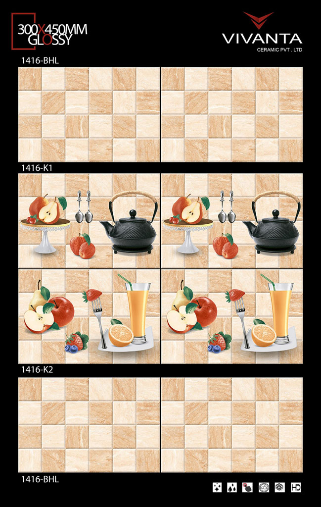 Home Wall Tiles Matt 12X18 GLOSSY | 300X450 MM 1416-K
