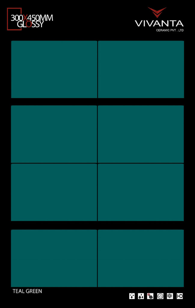 Home Wall Tiles Matt 12X18 GLOSSY | 300X450 MM TEAL GREEN